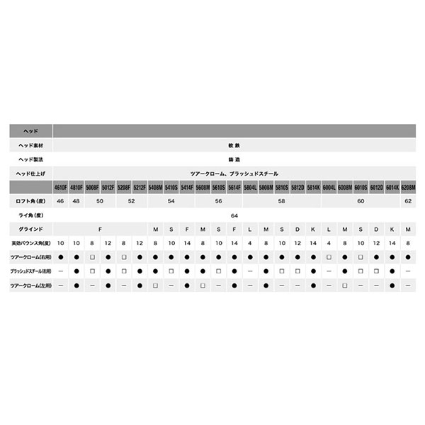 メーカー希望小売価格はメーカーカタログに基づいて掲載しています 【ヘッド素材】軟鉄 【ヘッド製法】鋳造 【グリップ】ゴルフプライド ツアーベルベット・ラバー・360°(M60) ※NSプロ950GH装着時はM62 ●ご注文に関しまして● 4608F=ロフト角46°/バウンス角8°/Fグラインド となります。