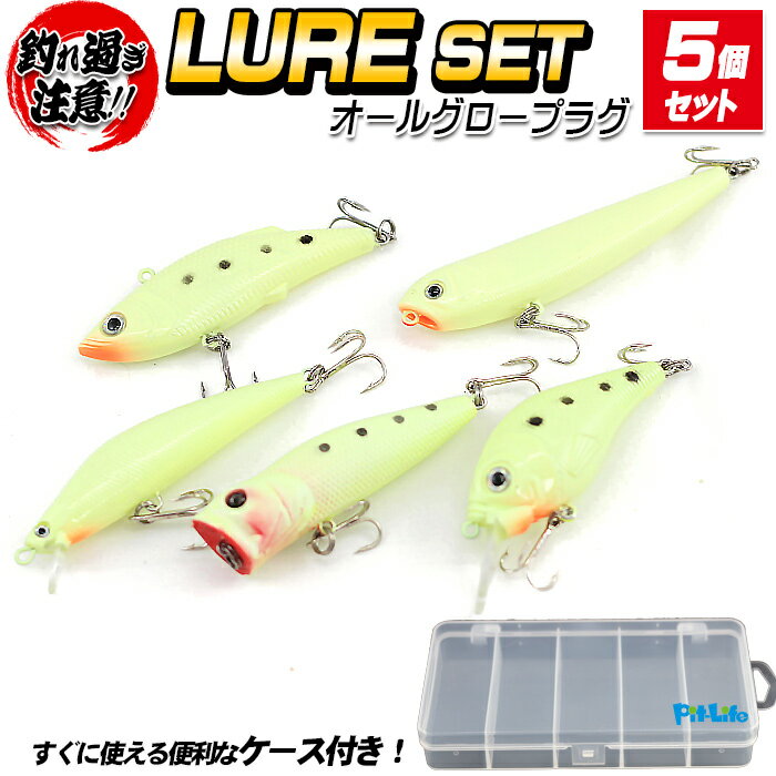 【P10倍/MAX20%OFFクーポン】ルアー セット グローカラー 5個入り 詰め合わせ | ペンシル レンジバイブ シンキングミノー ポッパー プラグ GLOW フルレンジ シーバス ソルトルアー ランガン 多種多様 釣り FISHING デイ ナイト ゲーム 疑似餌 大量ルアー 湾奥 海水 汽水 淡