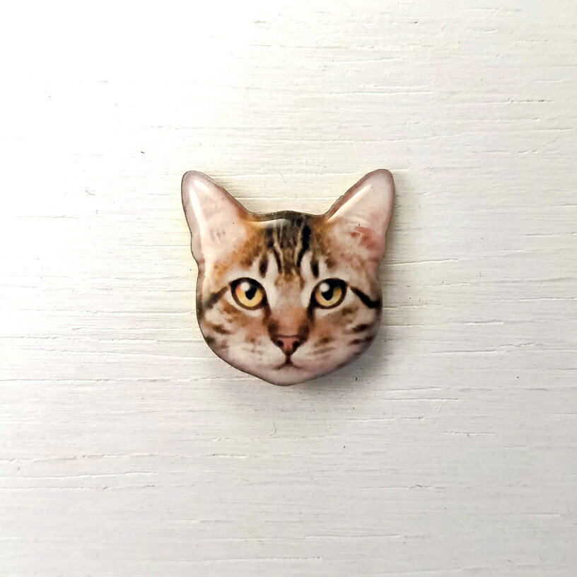 " キジトラ " にゃんこ ピンバッジ ピンズ 【Sサイズ】 オリジナル ハンドメイド アクセサリー ペット 動物 モチーフ 手作りアクセサリー オリジナルブランド " atelier Clavis "〈 アトリエ クラビス 〉 ねこちゃんの顔をリアルに愛らしくイラストのピンバッジにしてみました♪