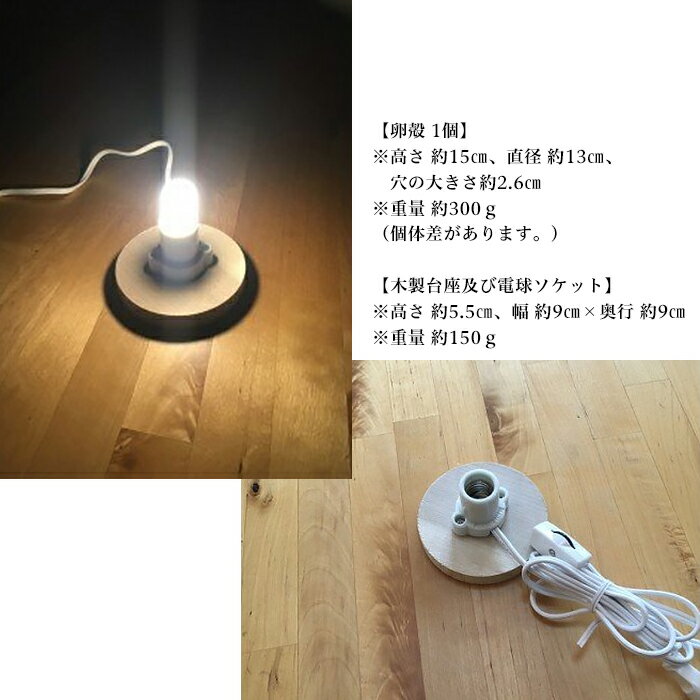 ) ・木製台座及び電球ソケット ※高さ 約5.5cm、幅 約9cm×奥行 約9cm ※重量 約150g 産地名 埼玉県美里町産 発送期日 入金確認から1週間〜1か月程度 詳細 埼玉県の厳しい暑さ・寒さを乗り越えたブリーダーのダチョウが1羽につき年間50個程度しか産まない貴重な卵を利用してエッグランプを作りました。