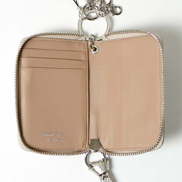 Jimmy Choo(ジミーチュウ)の他商品一覧はこちら ITEM CADET GTA COLOR CHANPAGNE/ROE-GOLD-METALLICMIX シルバー他 SIZE(cm) タテ7.5×ヨコ11×マチ2 開閉: ファスナー 内側: カード入れ×3 オープンポケット×2 キーリング×1 ストラップ×1 フック(大×1 小×3) ⇒サイズガイドはこちら ※サイズの若干の誤差はご了承ください。