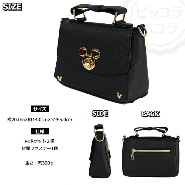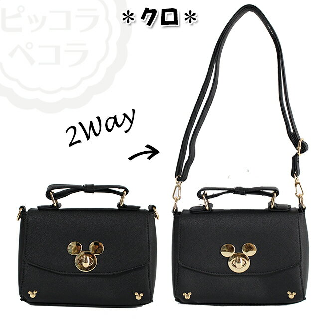ミッキーのひねり金具付きの合皮バッグです。
